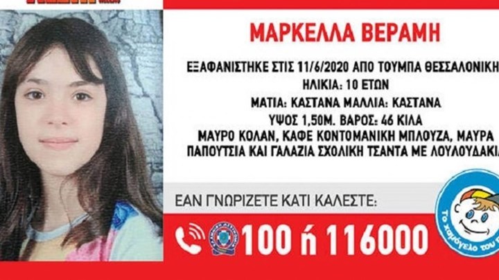 Την εξαφάνισή της γνωστοποίησε με ανακοίνωσή του και το «Χαμόγελο του Παιδιού», σύμφωνα με την οποία το ανήλικο κορίτσι έχει καστανά μαλλιά, καστανά μάτια, ύψος 1,50 μ. και βάρος 46 κιλά. Την ημέρα της εξαφάνισης φορούσε μαύρο κολάν, καφέ κοντομάνικη μπλούζα, μαύρα παπούτσια, ενώ κουβαλούσε γαλάζια σχολική τσάντα με λουλούδια.