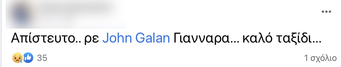 Και ο παραγωγός του ΑΝΤ1, Δημήτρης Κοτσίκος αποχαιρέτησε τον Γιάννη Γαλανούλη: «Σοκ! Καλό ταξίδι Γιάννη, πες ότι μας κάνεις ακόμα μια πλάκα» έγραψε.