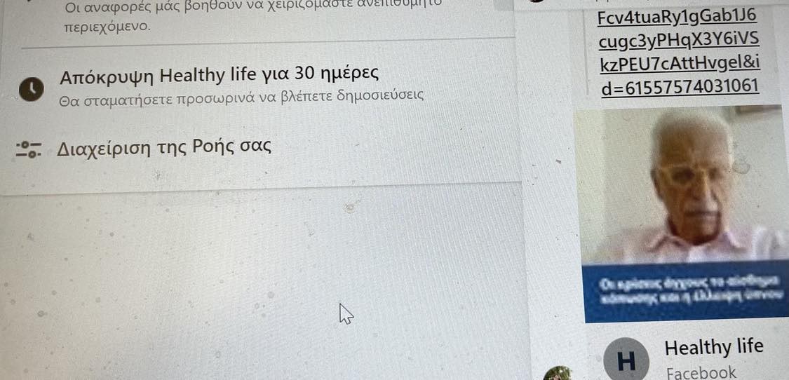 «Για τέταρτη ή πέμπτη φορά θύμα παραπληροφόρησης του κοινού. Αναγνωρίζω το πουκάμισο, τα γυαλιά μου, τη φωνή μου αλλά όχι αυτά που λέω, και βέβαια δεν είμαι καθηγητής καρδιολογίας. Υπάρχει λύση; Ενημέρωσα το facebook και φαίνεται ότι σταμάτησε την κοινοποίηση για 30 ημέρες. Ελπίζω να μην ξανασυμβεί!» αναφέρει ο καθηγητής σε ανάρτησή του εφιστώντας την προσοχή των χρηστών.