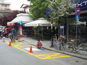 Από χθες, συνεργεία του Δήμου τοποθέτησαν κατακόρυφη σήμανση (δηλαδή με κολωνάκια και σήμα) σε κάθε μία από τις θέσεις αυτές. Ξεκίνησε, επίσης, η διαδικασία επιχρωματισμού τους (με κίτρινο χρώμα) και τοποθέτησης – διαγράμμισης του ειδικού σήματος για τα ΑμεΑ.