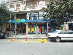 – Επί της οδού Ομήρου, στις εισόδους του υποκαταστήματος και των ιατρείων του Ι.Κ.Α. Τρικάλων (2)