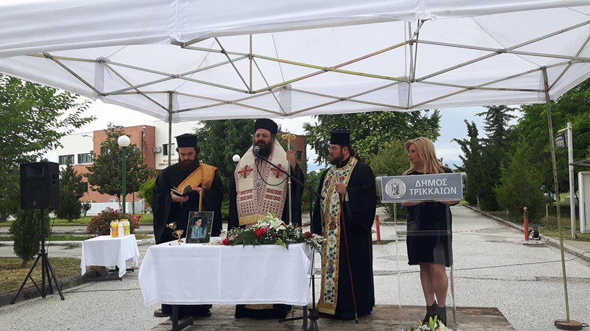 Τα αποκαλυπτήρια του ονόματος της οδού έγιναν από τον Δήμαρχο, με παρόντα και τον Σεβασμιώτατο Μητροπολίτη Τρίκκης και Σταγών κ.κ. Χρυσόστομο, ο οποίος τέλεσε επιμνημόσυνη δέηση.