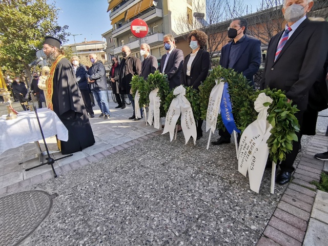 Ακολούθησε κατάθεση στεφάνων, από την αντιδήμαρχο Τρικκαίων Εφη Λεβέντη, τον βουλευτή του ΣΥΡΙΖΑ Σάκη Παπαδόπουλο, τον εντεταλμένο περιφερειακό σύμβουλο Ντίνο Μπάρδα, τον α΄ αντιπρόεδρο του Επιμελητηρίου Τρικάλων Δημ. Τσιόλα και τον εκπρόσωπο της Πρωτοβουλίας για την αγροτική εξέγερση, υποναύαρχο Π.Ν. ε.α. Νίκο Γκόγκο.
