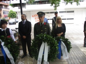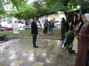 Στη συνέχεια στο μνημείο που βρίσκεται στην πλατεία Μικράς Ασίας (Συνοικισμού) τελέστηκε επιμνημόσυνη δέηση και κατάθεση στεφάνων