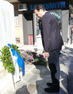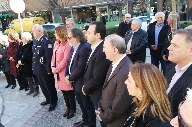 Ακολούθησε η κατάθεση στεφάνων, με πρώτο τον Δήμαρχο Τρικκαίων και πρόεδρο της ΚΕΔ, Δημήτρη Παπαστεργίου. Παρούσης της βουλευτίνας κ. Κατερίνας Παπακώστα, ακολούθησαν, ο θεματικός αντιπεριφερειάρχης κ. Ντ. Μπάρδας, ο βουλευτής Σάκης Παπαδόπουλος εκ μέρους του ΣΥΡΙΖΑ Τρικάλων (παρούσα και η τ. βουλευτίνα κ. Παναγιώτα Δριτσέλη) και εκ μέρους της Πρωτοβουλίας για τον εορτασμό της εξέγερσης ο ναύαρχος ε.α. κ. Νίκος Γκόγκος, ο οποίος απηύθυνε και έναν σύντομο χαιρετισμό. Επίσης παρέστησαν, ο αντιδήμαρχος Τρικκαίων κ. Α. Αναστασίου, οι τ. βουλευτές κ.κ. Δριτσέλη και Σιμορέλης και ο τ. πρόεδρος του Δημοτικού Συμβουλίου Τρικκαίων κ. Μιχ. Λάππας. Στο τέλος της εκδήλωσης η Δημοτική Φιλαρμονική Τρικάλων παιάνισε τον Εθνικό Υμνο.