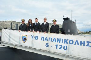 Ο Τρικαλινός μουσικός με τον Αρχιμουσικό της Μουσικής ΠΝ και δύο φίλους που τον συνόδευαν στην επίσκεψή του οδηγήθηκε στο Υποβρύχιο «Παπανικολής», για το οποίο γράφτηκε το εμβατήριο. Εκεί ο Κυβερνήτης του Υποβρυχίου Πλωτάρχης κ. Δημήτριος Κ. Βογιατζής του απένειμε τιμητική πλακέτα με τον θυρεό του «Παπανικολή» και στην συνέχεια ο Ύπαρχος του υποβρυχίου Υποπλοίαρχος κ. Ιωάννης Μπουρνής ξενάγησε τους επισκέπτες σε όλους τους χώρους του υποβρυχίου.