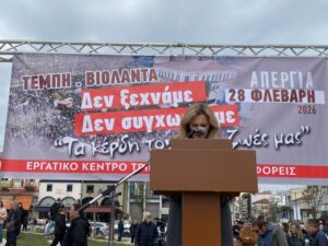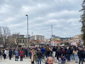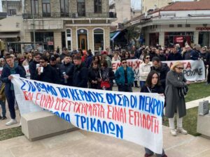 Οι Τρικαλινοί/νες απαίτησαν δικαιοσύνη για τα θύμετα ενώ αρκετοί ομιλητές έκαναν λόγο για την συνεχιζόμενη προσπάθειςατης κυβέρνησης για την συγκάλυψη του εγκλήματος των Τεμπών.