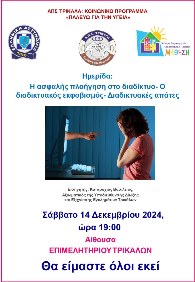 2. Το Σάββατο 14/12/2024, ο ΑΠΣ Τρίκαλα, τα ΚΔΑΠ ΜΑΘΗΣΗ και η Ελληνική Αστυνομία