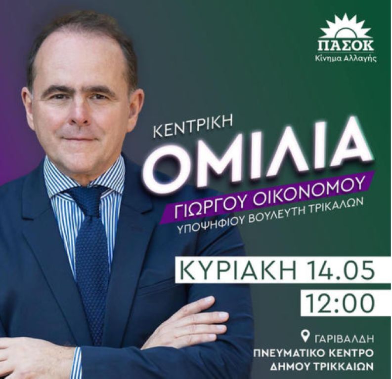 Σας προσκαλώ στην κεντρική μου ομιλία, που θα πραγματοποιηθεί την Κυριακή 14 Μαΐου στο Πνευματικό Κέντρο Τρικάλων στις 12:00.