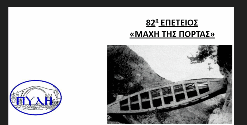 Ο Δήμος Πύλης και οι τοπικοί φορείς τιμούν τη μνήμη και την ιστορική σημασία της Μάχης της Πόρτας, με την καθιερωμένη επετειακή εκδήλωση που θα πραγματοποιηθεί την Κυριακή 15 Ιουνίου 2025, στο Μνημείο του Αγνώστου Στρατιώτη, στην Πύλη Τρικάλων.
