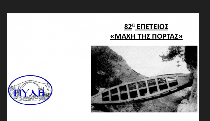 Ο Δήμος Πύλης και οι τοπικοί φορείς τιμούν τη μνήμη και την ιστορική σημασία της Μάχης της Πόρτας, με την καθιερωμένη επετειακή εκδήλωση που θα πραγματοποιηθεί την Κυριακή 15 Ιουνίου 2025, στο Μνημείο του Αγνώστου Στρατιώτη, στην Πύλη Τρικάλων.