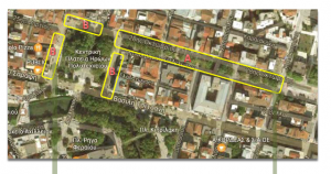 ζ) Επέκταση των πεζοδρομίων εκατέρωθεν της Πλατείας Ηρώων Πολυτεχνείου, επί των οδών Ερμού, 28ης Οκτωβρίου και 21ης Αυγούστου, με μέσο πλάτος 5,5μ.