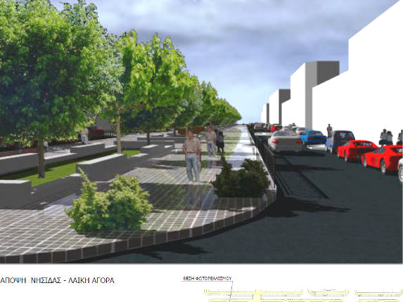 γ) Δημιουργία χώρων τροφοδοσίας της λαϊκής και των καταστημάτων με πλάτος 2,5 μ.