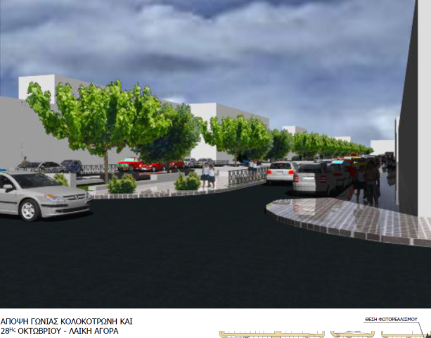 δ) Δημιουργία χώρου στάθμευσης πλάτους 2,00 μέτρων επί της οδού 28ης Οκτωβρίου και λωρίδας κυκλοφορίας οχημάτων πλάτους 3,70 μέτρων.