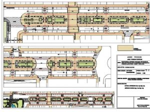 α) Υψομετρική ενοποίηση των τριών νησίδων και κατάργηση του εγκάρσιου δρόμου. Οι νησίδες θα έχουν πλάτος 14,50 μέτρα.