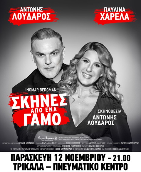 trikaladay.gr / Την Παρασκευή η θεατρική παράσταση “Σκηνές από έναν Γάμο” με τους Αντώνη Λουδάρο και Παυλίνα Χαρέλα