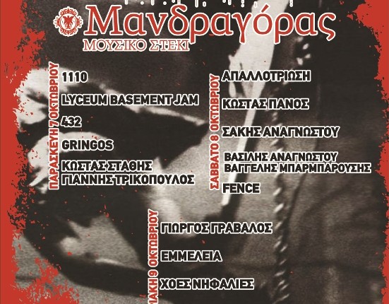 Το μουσικό στέκι ΜΑΝΔΡΑΓΟΡΑΣ διοργανώνει για έκτη συνεχόμενη χρονιά φεστιβάλ Τρικαλινών συγκροτημάτων στις 7,8 και 9 Οκτωβρίου.