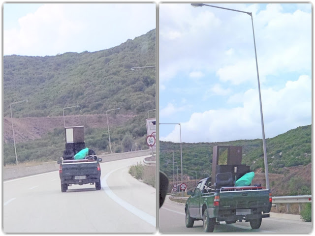 βλέπετε ένα αγροτικό αυτοκίνητο να μεταφέρει στην καρότσα του έπιπλα γραφείου, τα οποία είναι πρόχειρα δεμένα. Διόλου απίθανο σε μία στροφή ή σε ένα πιθανό φρενάρισμα του οδηγού του αγροτικού, τα έπιπλα να πεταχτούν στο δρόμο και να προκληθεί τροχαίο. Απαιτείται ιδιαίτερη προσοχή στη μεταφορά αντικειμένων που χαρακτηρίζονται ως ογκώδη, μιας και θα πρέπει να τηρούνται στοιχειωδώς κάποιοι βασικοί κανόνες. Περιττεύει να αναφέρουμε ότι οι συγκεκριμένοι κανόνες δεν τηρήθηκαν στην περίπτωση του αγροτικού οχήματος της φωτογραφίας…