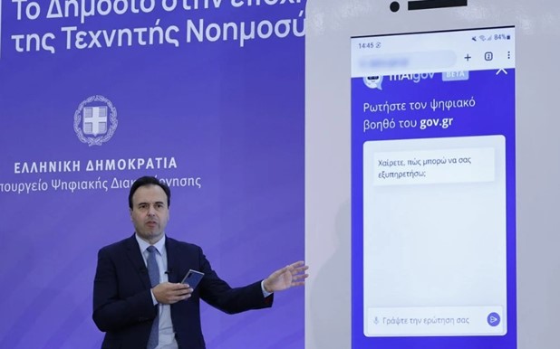 Ο Υπουργός Ψηφιακής Διακυβέρνησης Δημήτρης Παπαστεργίου μαζί με τον Υφυπουργό Κωνσταντίνο Κυρανάκη και τον Γενικό Γραμματέα Πληροφοριακών Συστημάτων και Ψηφιακής Διακυβέρνησης Δημοσθένη Αναγνωστόπουλο, παρουσίασαν στους διαπιστευμένους συντάκτες του Υπουργείου την πρώτη μεγάλης κλίμακας εφαρμογή ΤΝ για τον ελληνικό Δημόσιο. Στόχος είναι να συμβάλλει καταρχάς στον περαιτέρω εκσυγχρονισμό της Δημόσιας Διοίκησης και επιπλέον να διασφαλίσει ότι σε μια εποχή καταιγιστικών αλλαγών, το Δημόσιο μπορεί να συμβαδίζει με τις σύγχρονες τεχνολογικές εξελίξεις.