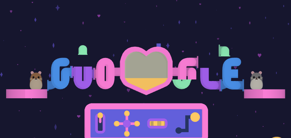 «Κάποιες φορές η αγάπη σε ξαφνιάζει. Μπορεί να είναι γεμάτη με ανατροπές και παρά τα σκαμπανεβάσματα, ακόμη μπορεί να φέρει πιο κοντά τον κόσμο (χωρίς να μετρά η φυλή). Απλά κοιτάξτε τα δύο ερωτευμένα χάμστερ που πρωταγωνιστούν στο σημερινό διαδραστικό 3-D doodle. Βρείτε μαζί τους το μονοπάτι και αφαιρέστε τα εμπόδια ώστε να πέσει το ένα στην αγκαλιά του άλλου. Όπως λένε το σπίτι είναι όπου βρίσκεται η καδιά. Χαρούμενη ημέρα του Αγίου Βαλεντίνου», είναι το μήνυμα της Google.