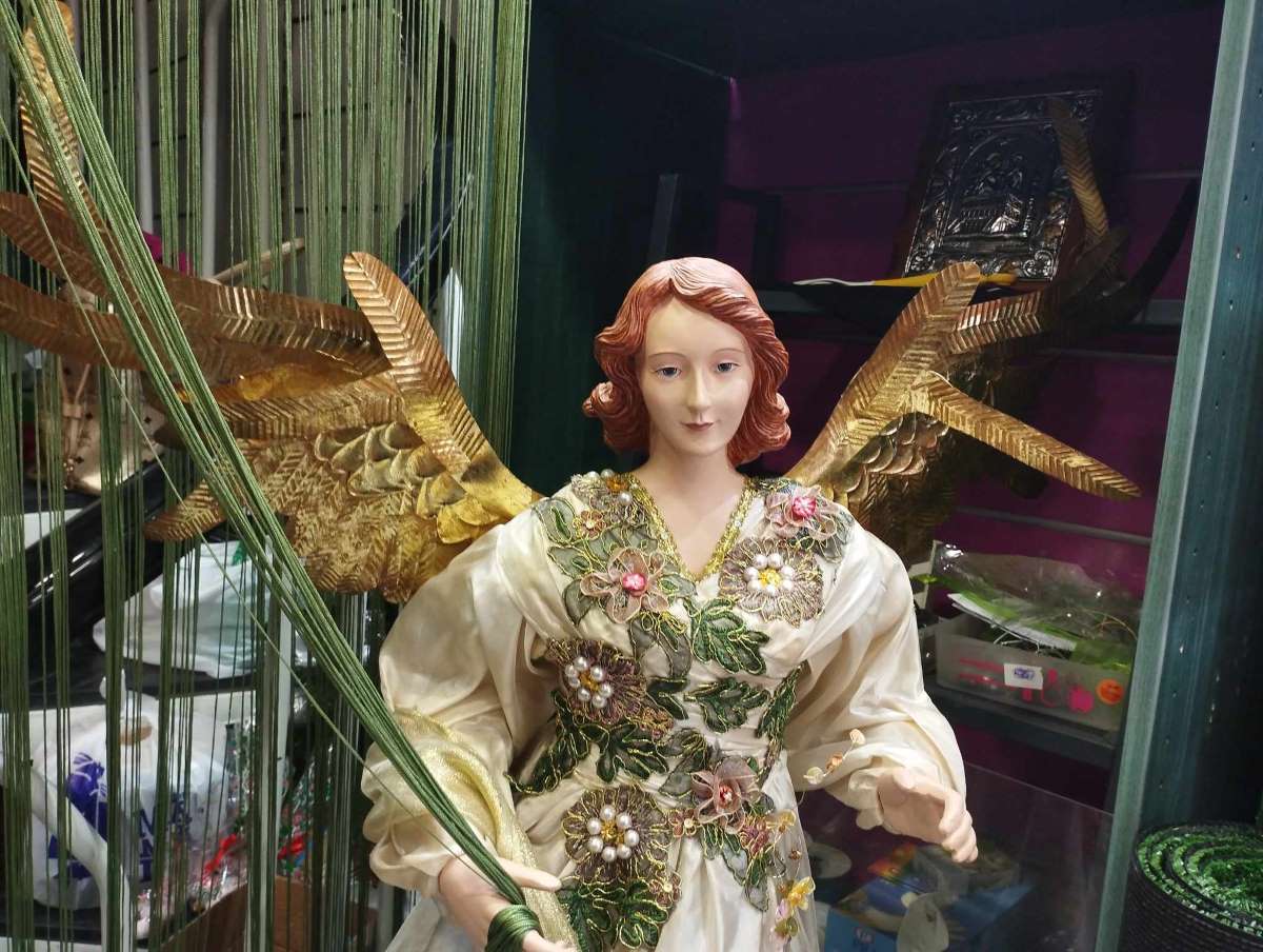 «Επίσης, όλοι οι άνθρωποι έχουν έναν φύλακα άγγελο από την ώρα που γεννιούνται. Εγώ δουλεύω με τους αγγέλους, και με έχουν βοηθήσει πολύ στη ζωή μου. Είναι όμως στο χέρι του καθενός κατά πόσο θέλει να ζητήσει βοήθεια, μόνος του δεν παρεμβαίνει, επειδή υπάρχει ελευθερη βούληση. Τώρα αυτό που λένε ότι, αν εγώ τρέχω με 500, που είναι ο φύλακας άγγελός μου να με σώσει; Εκεί δεν μπαίνει καν στη διαδικασία. Ο άγγελος έρχεται, αρκεί να το ζητήσεις. Μόνος του δεν παίρνει ποτέ πρωτοβουλία να έρθει να σε βρει. Εμένα και στα τρία μου χειρουργεία οι άγγελοι ήταν εκεί, το πιστεύω ακράδαντα. Οι άγγελοι βοηθούν τους ανθρωπους. Αν πας ένα ταξίδι και έχεις ανησυχία για τον δρόμο, του λες “έλα μαζί μου να με συνοδεύσεις”. Αυτός εκεί είναι ο αγαπημένος μου», μου λέει δείχνοντάς μου ένα άγαλμα που μοιάζει να γεμίζει με την παρουσία του τον χώρο. «Είναι ο Μιχαήλ, που πάντα χαμογελάει. Όταν είναι ευχαριστημένος πάντα χαμογελάει».
