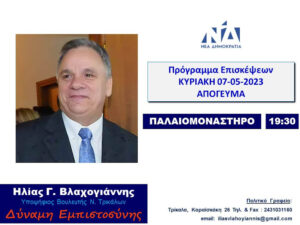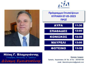 Το πρόγραμμα επισκέψεων του Ηλία Βλαχογιάννη την Κυριακή 7/5