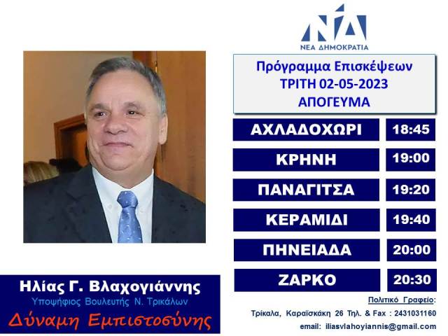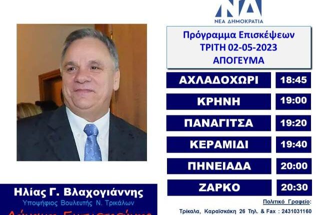 Το πρόγραμμα επισκέψεων του Ηλία Βλαχογιάννη την Τρίτη 2/5