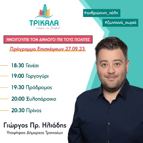 trikaladay.gr / Τοπικά / Το πρόγραμμα επισκέψεων του υποψήφιου δημάρχου Τρικάλων Γ. Ηλιάδη την Τετάρτη 27 Σεπτεμβρίου
