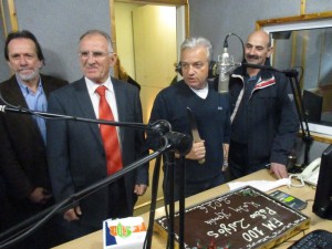 Ο διευθυντής του ραδιοφωνικού σταθμού Κώστας Αργυρούσης που κρατούσε και το …μαχαίρι, μαζί με τους συνιδιοκτήτες του σταθμού Φάνη Σεριστρατίδη και Θεοδ. Ευθυμίου και παρουσία των εργαζόμενων, συνεργατών και φίλων του «Ζυγού», έκοψε την πίτα στον «αέρα».