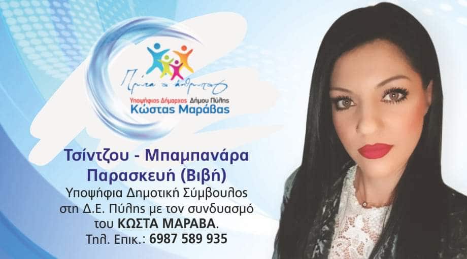 Στο πλευρό του δημάρχου Πύλης και εκ νέου υποψήφιου Κώστα Μαράβα τάχθηκε η Βιβή Τσίντζου-Μπαμπανάρα.