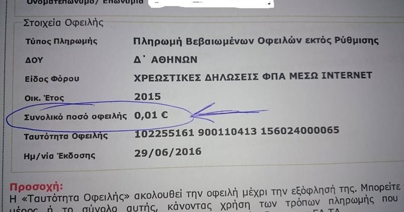Ελλάς το μεγαλείο σου για άλλη μια φορά. Ελληνας φορολογούμενος βρέθηκε αντιμέτωπος με τα απίστευτα που συμβαίνουν σε αυτή τη χώρα. Όπως ο ίδιος καταγγέλλει μέσω της προσωπικής του ιστοσελίδας στο Facebook: «Δεν μπορούσα να βγάλω ενημερότητα για πρώτη φορά μετά από…. 15 χρόνια. Ύστερα διαπίστωσα το γιατί… Η ξεφτίλα στο μεγαλείο της».