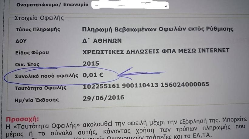 Ελλάς το μεγαλείο σου για άλλη μια φορά. Ελληνας φορολογούμενος βρέθηκε αντιμέτωπος με τα απίστευτα που συμβαίνουν σε αυτή τη χώρα. Όπως ο ίδιος καταγγέλλει μέσω της προσωπικής του ιστοσελίδας στο Facebook: «Δεν μπορούσα να βγάλω ενημερότητα για πρώτη φορά μετά από…. 15 χρόνια. Ύστερα διαπίστωσα το γιατί… Η ξεφτίλα στο μεγαλείο της».