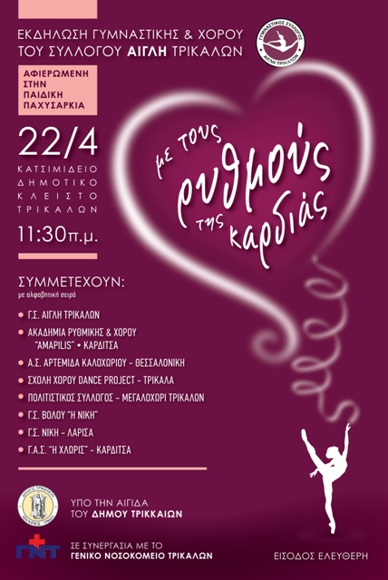 Ο Γυμναστικός Σύλλογος «Αίγλη» Τρικάλων, υπό την αιγίδα του Δήμου Τρικκαίων και σε συνεργασία με το Γενικό Νοσοκομείο Τρικάλων υποδέχεται χορευτικούς-αθλητικούς συλλόγους και σχολές χορού από όλη την Ελλάδα σε μια μαγευτική γιορτή χορού και άθλησης…
