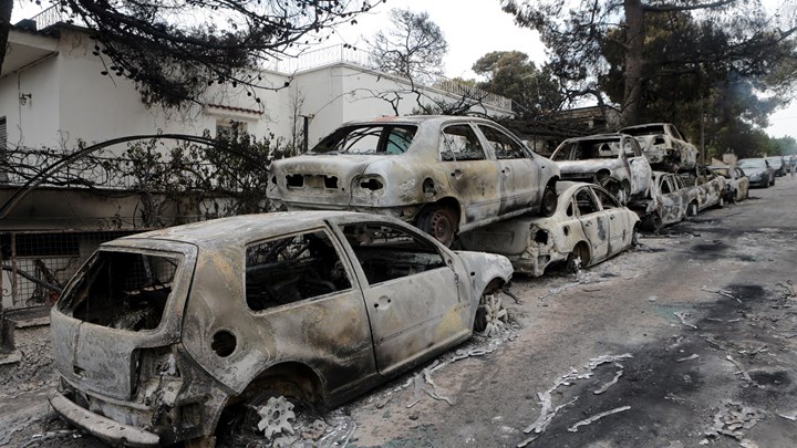 Στο μεταξύ, ο κεντρικός δρόμος στο Μάτιθυμίζει τοπίο πολέμου… Χαλάσματα, καμένα αυτοκίνητα, δέντρα και κολώνες της ΔΕΗ συνθέτουν το σκηνικό της επόμενης μέρας της φονικής πυρκαγιάς. Κατά μήκος της οδού Ποσειδώνος τα πυροσβεστικά οχήματα διέρχονται συνεχώς στους στενούς δρόμους προσπαθώντας να συμβάλουν στην κατάσβεση των μικροεστιών οι οποίες συχνά πυκνά αναζωπυρώνονται λόγω των ανέμων.