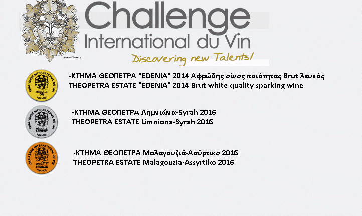 Το χάλκινο μετάλλιο αφορά το ΚΤΗΜΑ ΘΕΟΠΕΤΡΑ ΛΕΥΚΟ 2016 ΠΓΕ Μετέωρα, από τις ποικιλίες Ασύρτικο- Μαλαγουζιά.