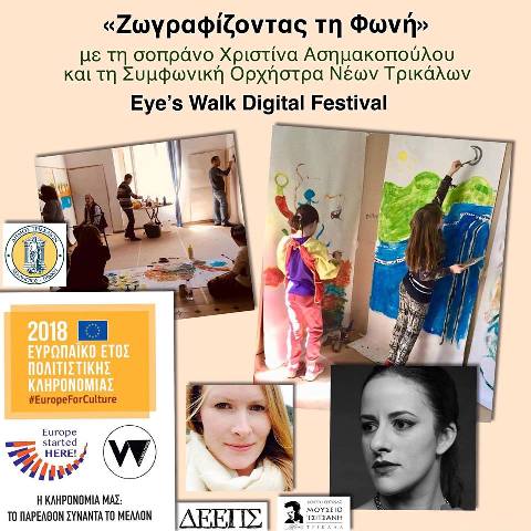 • Ομάδα: Παιδιά 5-12 ετών ζωγραφίζουν ελεύθερα έχοντας ως ερέθισμα τη φωνή της σοπράνο Χριστίνας Ασημακοπούλου και τη Συμφωνική Ορχήστρα Νέων Τρικάλων.