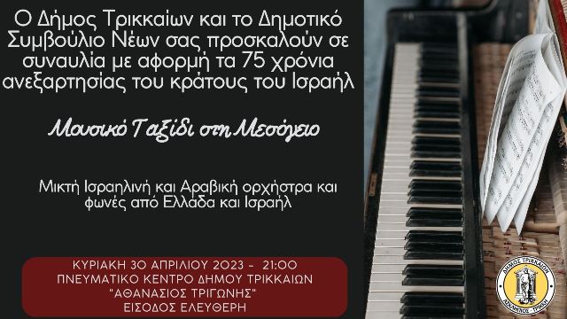 Ο Δήμος Τρικκαίων και το Δημοτικό Συμβούλιο Νέων σας προσκαλούν σε συναυλία με αφορμή τα 75 χρόνια ανεξαρτησίας του Ισραήλ - 1
