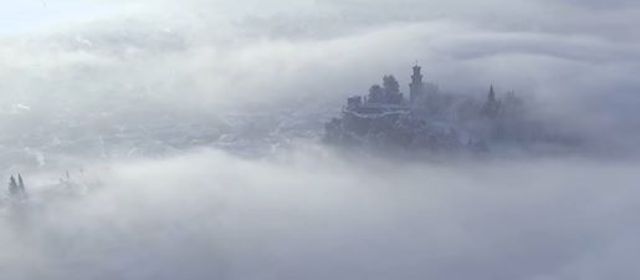 Με εναέρια λήψη, φαίνεται η πόλη καλυμμένη από νέφη, με το Κάστρο το Βυζαντινό και το Ρολόι να ξεχωρίζουν. Το χιόνι έχει καλύψει με πέπλο λευκό τα Τρίκαλα, δίνοντας από ψηλά την εικόνα ενός τόπου βγαλμένου από παραμύθι – ή από την ξακουστή σειρά. Απολαύστε στο βίντεο την περιήγηση