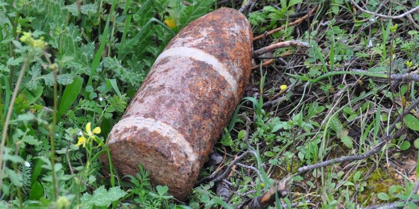 Το βλήμα όλμου βρέθηκε στην περιοχή Γκουμπά Διάβας εντός ρέματος την περασμένη Κυριακή από νεαρό , που έψαχνε για σκουλήκια ( δολώματα ) για ψάρεμα.
