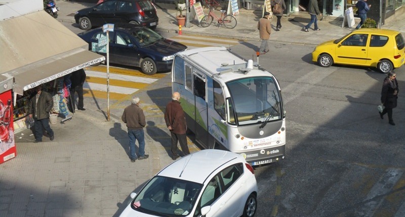 Ενα εμπόδιο σταμάτησε σήμερα για περισσότερο από μισή ώρα την κίνηση του λεωφορείου χωρίς οδηγό.