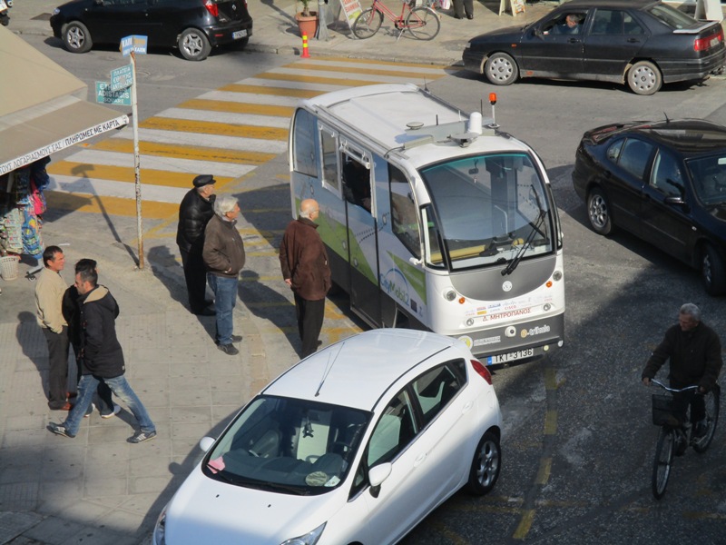 Ενα εμπόδιο σταμάτησε σήμερα για περισσότερο από μισή ώρα την κίνηση του λεωφορείου χωρίς οδηγό.