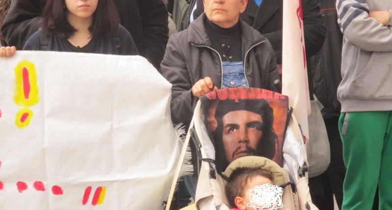 Όπως βλέπετε στη φωτογραφία του trikaladay,πάνω στο καροτσάκι ήταν αναρτημένη μια αφίσα με τη μορφή του Ερνέστο Τσε Γκεβάρα…