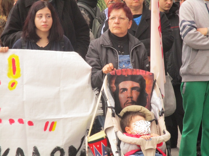 Μια διαφορετική νότα έδωσε σήμερα στην κεντρική πλατεία Τρικάλων και στην απεργιακή συγκέντρωση του ΠΑΜΕ μια Τρικαλινή που είχε στο καρότσι ένα μωρό.