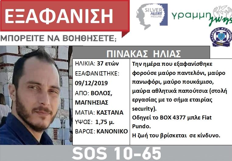 Η οικογένειά του και η τοπική κοινωνία τον αναζητά ενώ μεγάλη είναι και η κινητοποίηση μέσω κοινωνικών δικτύων για τον εντοπισμό του. Για τον 37χρονο έχει ενεργοποιηθεί η Γραμμή Ζωής «Silver Alert» ενώ αστυνομία και εθελοντικές ομάδες έχουν «χτενίσει» τον Βόλο για να εντοπίσουν κάποιο σημάδι του.