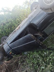 Η οδηγός του Ι.Χ αυτοκινήτου για άγνωστους λόγους έχασε τον έλεγχο του οχήματος με αποτέλεσμα αυτό να εκτραπεί της πορείας του και να καταλήξει ανάποδα έξω από τον δρόμο.