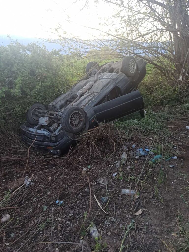 Η οδηγός του Ι.Χ αυτοκινήτου για άγνωστους λόγους έχασε τον έλεγχο του οχήματος με αποτέλεσμα αυτό να εκτραπεί της πορείας του και να καταλήξει ανάποδα έξω από τον δρόμο.