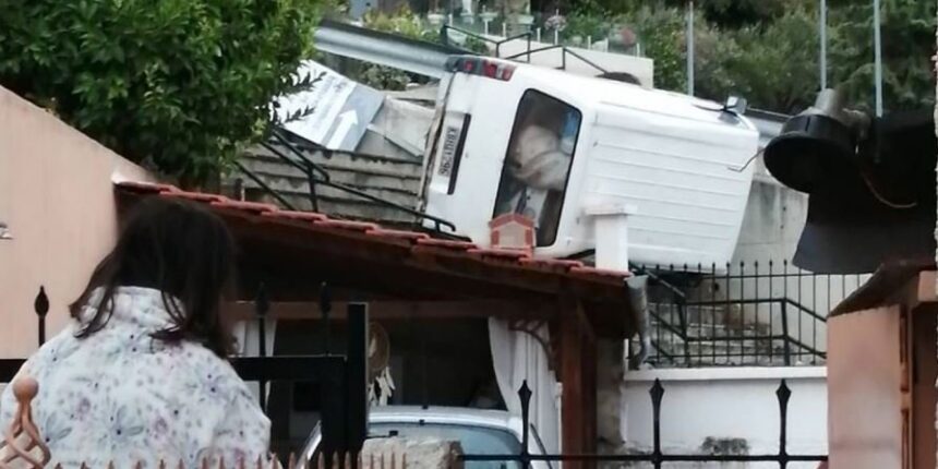 Kόβει την ανάσα το τροχαίο που σημειώθηκε σήμερα το πρωί στην Καβάλα, όταν ένα φορτηγάκι έπειτα από τρελή πορεία “προσγειώθηκε” ανάμεσα σε σπίτια.