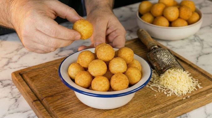 Μετράμε το μείγμα σε μπαλάκια των 20 γρ. και τα αφήνουμε πάνω σε ξύλο κοπής.