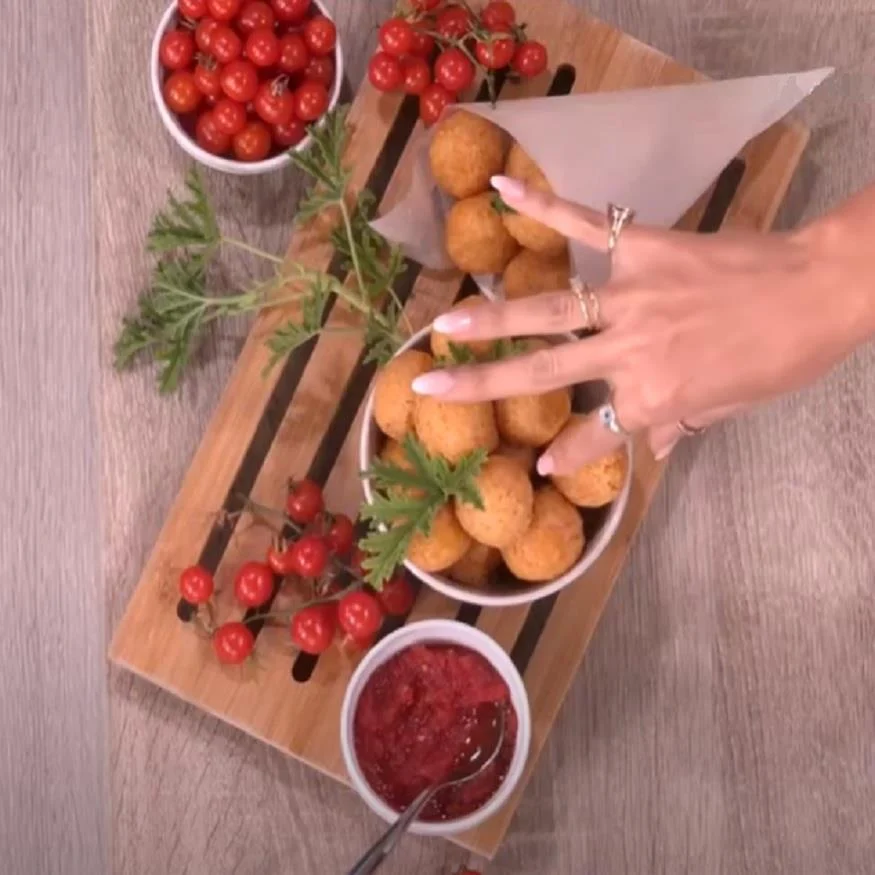 - Πλάθετε τα τυρολουκουμαδάκια σε στρογγυλές μπαλίτσες και τα βάζετε στο ψυγείο να κρυώσουν.