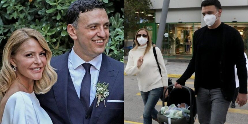 Στη φωτογραφία αυτή, βλέπουμε τον Βασίλη Κικίλια να έχει σκύψει τρυφερά πάνω από τον γιο του που ήρθε στον κόσμο για να γεμίσει με χαμόγελα τη ζωή του, και να τον φιλά τρυφερά.